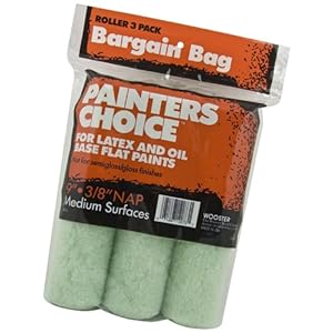 | Wooster Brush R728-9 3/8-Inch Nap Painter's Choice Roller Cover 3-Pack, 9-Inch | | Access the most advanced RSS tools and use them to your advantage. | 2013-04-07 02:05:23.378108-04 Category: Tools & Home Improvement Vendor: Mint green fabric for all flat paints Polypropylene core resists water and solvents and cracking Standard 9 Inch x 3/8 Inch rol  Product Description : From the ManufacturerPainter's Choice from Wooster offers good-quality rollers at a great value. Especially suited for DIY and maintenance jobs. The Wooster Brush Company has been manufacturing innovative, high-performance painting tools right out of Wooster, Ohio USA since 1851. Our trade names include Ultra/Pro, Advantage, Yachtsman, Shortcut paintbrushes; Super/Fab, Super Doo-Z roller covers; Sherlock frames and extension poles; Jumbo-Koter minirollers; and Prep Crew surface prep tools. You can feel confident knowing Wooster is the name behind your painting tools. Product Description : R728-9 Features: -''Triple value'' mint green good-quality fabric for all flat paints.-For medium surfaces, lightly textured drywall, plaster, and paneling.-Polypropylene cores resist water, solvents, and cracking.-Precise craftsmanship.-Superior performance with professional results.-Fits frame (3651-1996).-3/8'' nap.-9'' ro ller covers.-3 per card. Find out more | |